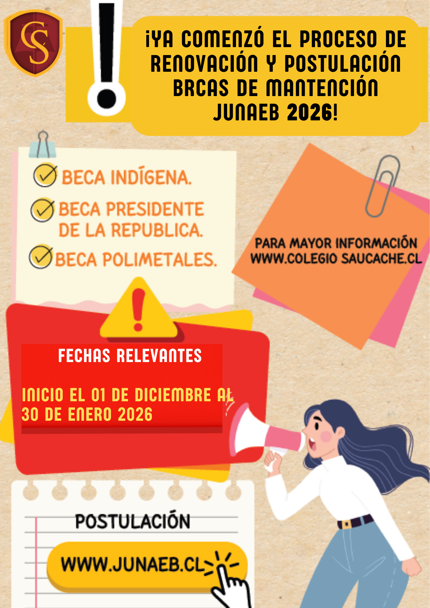 Se da inicio al proceso de Postulación y Renovación de Becas JUNAEB año 2026, el cual comienza el lunes 1 de